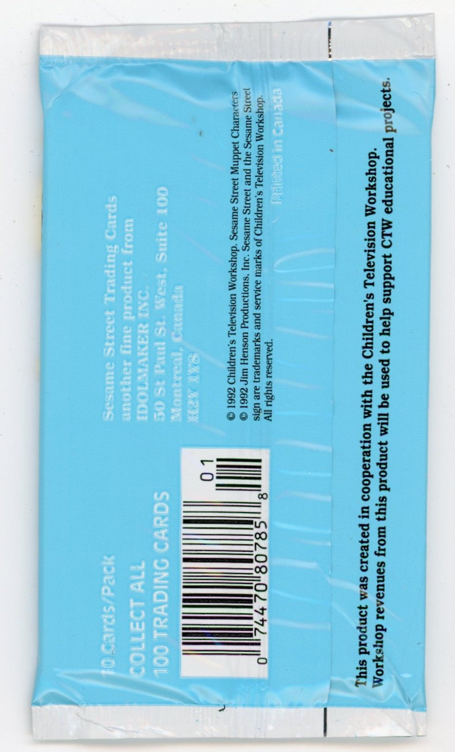 1992 Idolmaker Sesame Street Trading Card Pack (10 Cards)