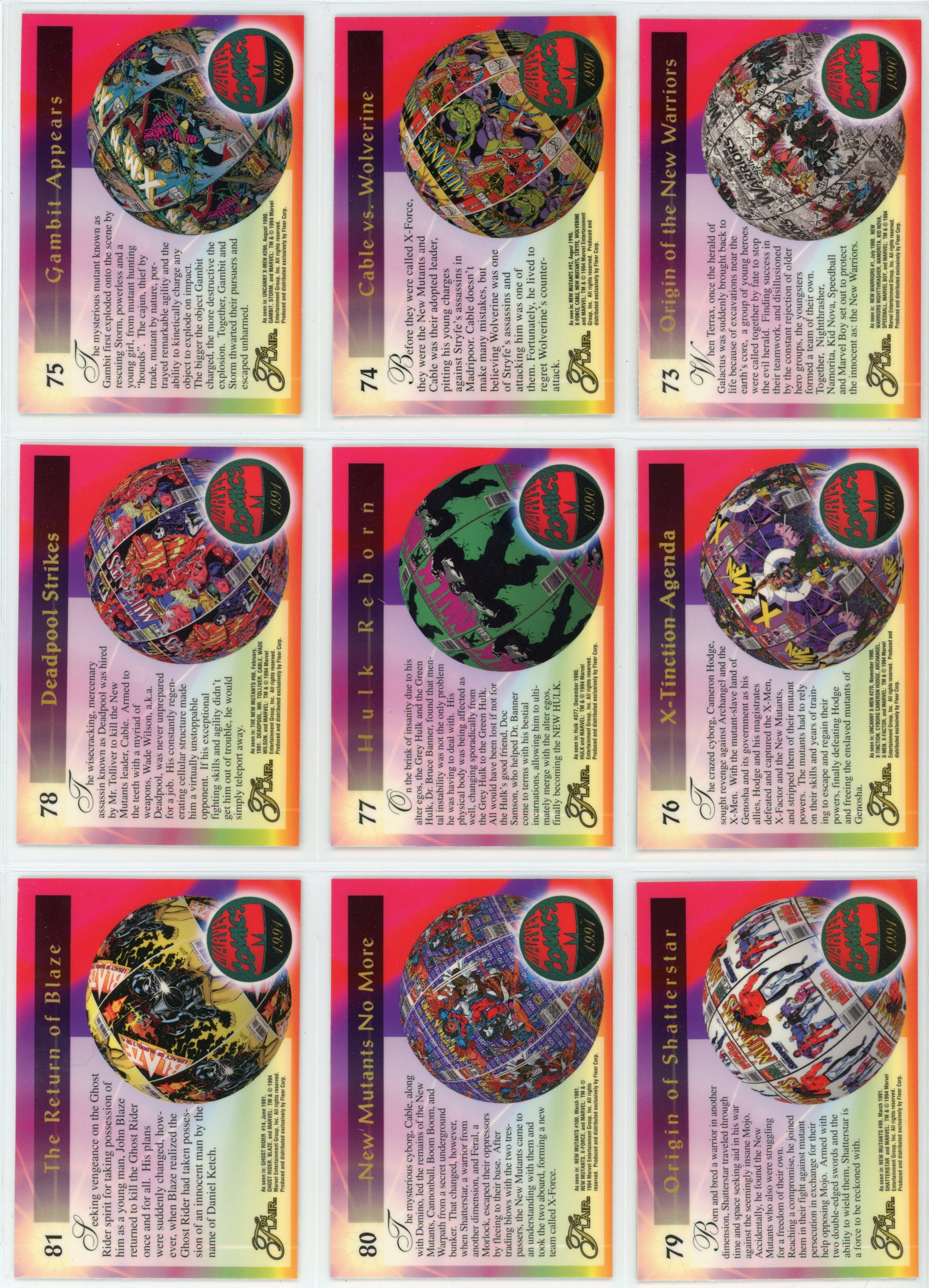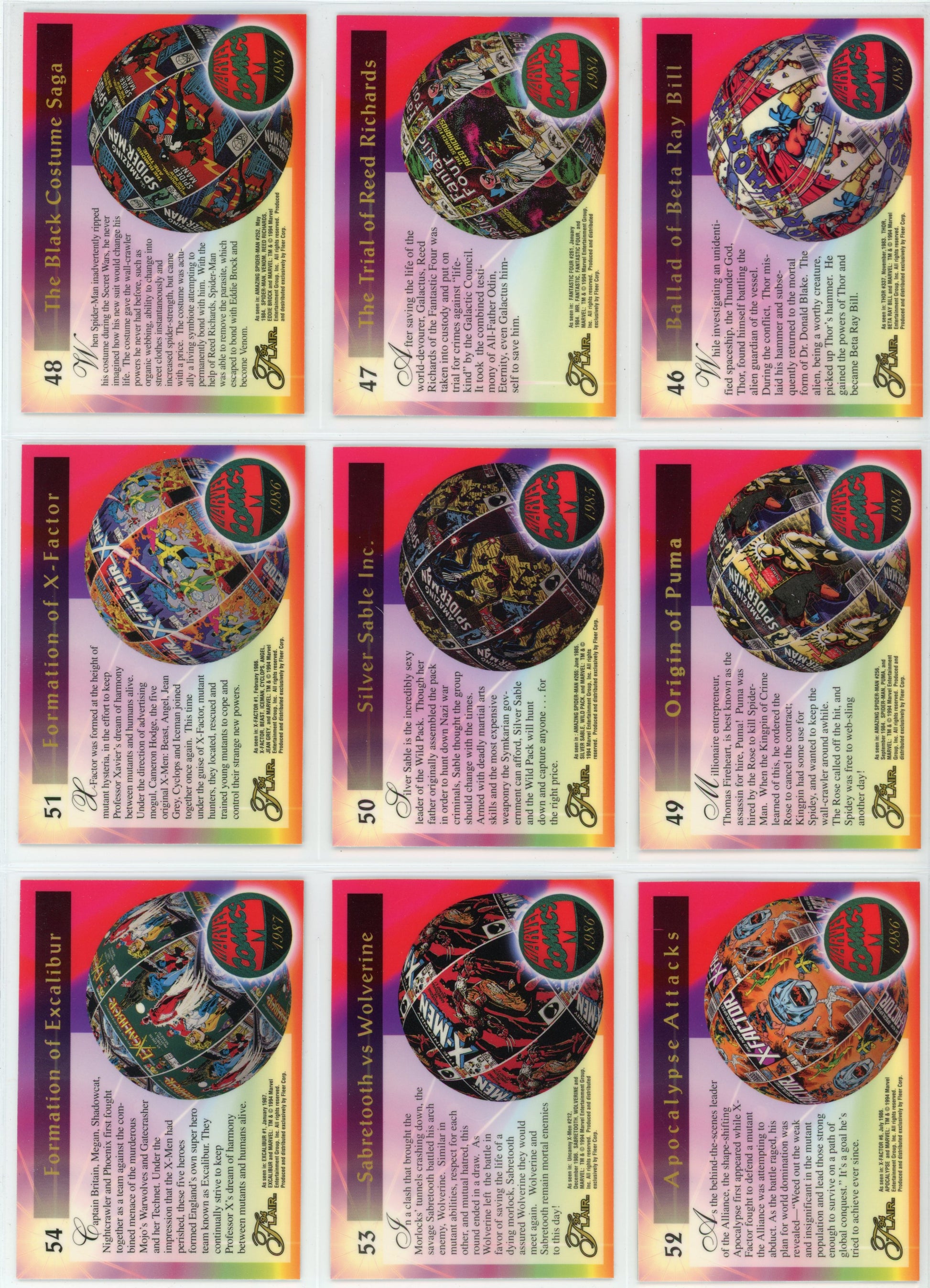 1994 Fleer Flair Marvel Universe Complete Trading Card Set (150 Cards) + Power Blast Inserts